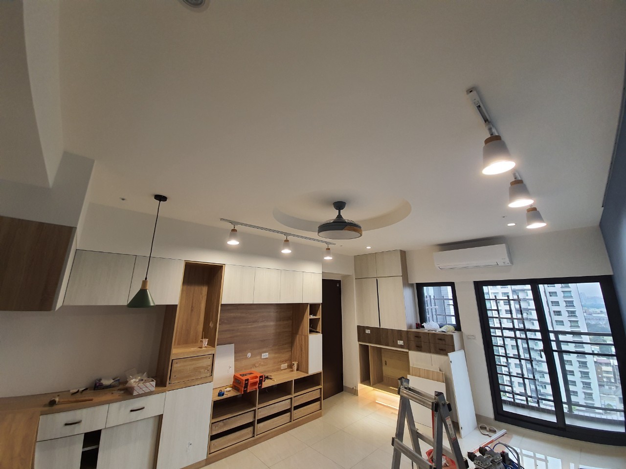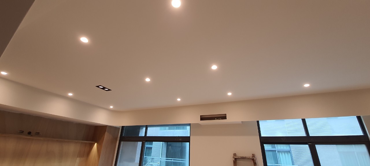 以矽酸鈣全平面覆蓋 ,把線路遮蓋起來,讓上端平整,也便於安裝崁燈 軌道燈 , 吊扇,吊隱式空調,是天花板最普遍的做法 。