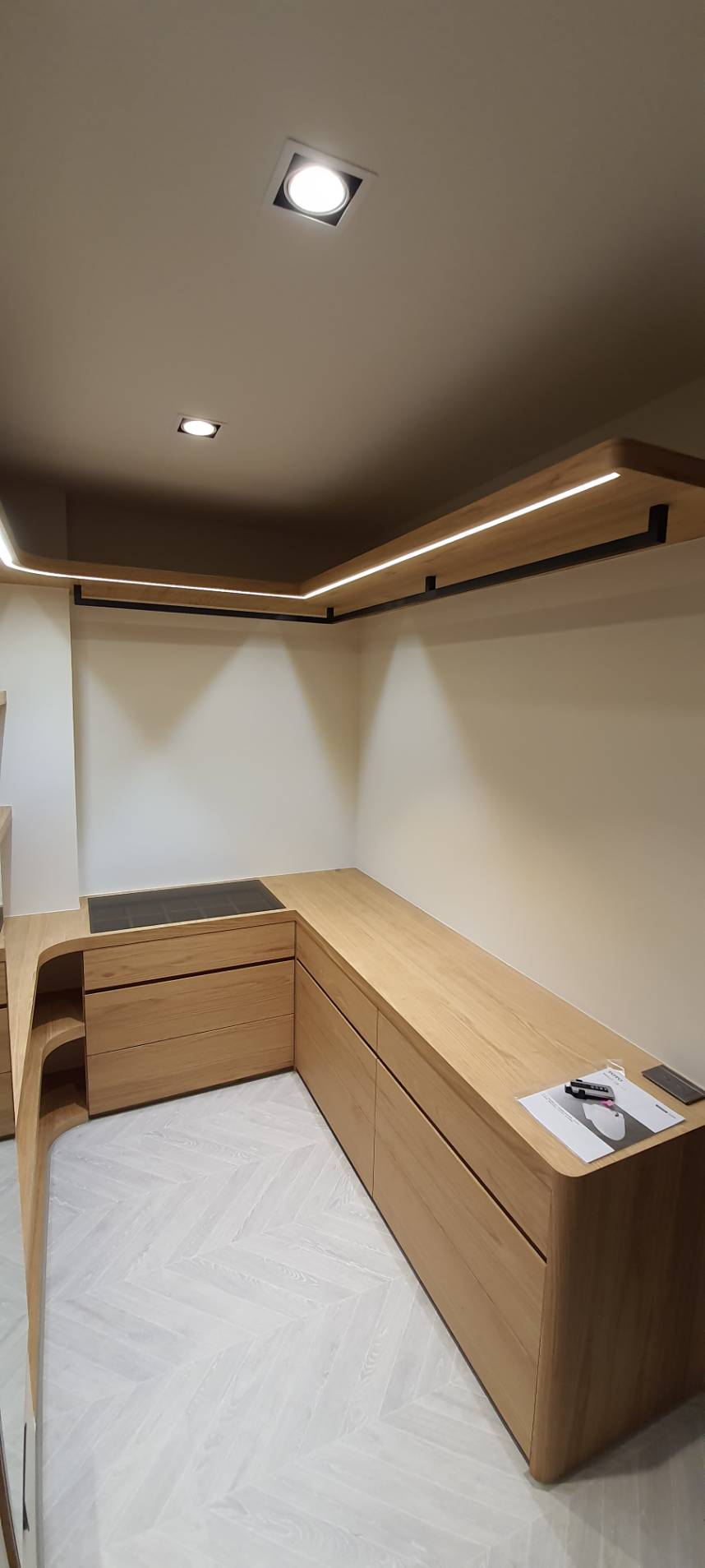 保持空間順暢與寬闊感,採開放式衣櫥或彈性隔間設計,讓視覺穿透更具延展性。